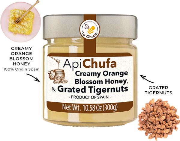 ApiChufa has a smooth and creamy texture. A single delicious spoonful will allow you to benefit from the nutritional properties of orange blossom honey and tiger nuts.