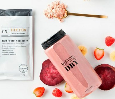 Content: 9 sachets of Dietox DRY with the same composition (9 x 60 g). Includes gift shaker. With each Red Fruits Smoothie you will ingest a total of 213 kcal, 20 g of protein, 3.8 g of fat and 20 g of carbohydrates